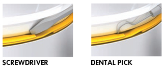 - Insert a screwdriver or dental pick behind the removal notch.