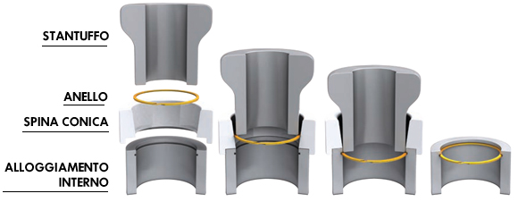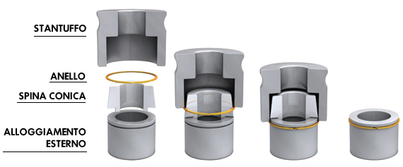 - ruotare l'anello premendolo intorno alla circonferenza fino alla sua inserzione completa nella gola.