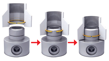 Per operazioni di assemblaggio più veloci ed automatiche possono venir progettate semplici attrezzature di assemblaggio. L'installazione su un albero può avvenire con uno stantuffo ed una spina conica. La spina angolata approssimativamente a sei gradi viene centrata sul terminale dell'albero. Uno stantuffo ad adattamento libero spinge l'anello in posizione sopra la spina conica. Una pressa manuale o un cilindro ad aria vengono comunemente impiegati per automatizzare questa operazione di assemblaggio.