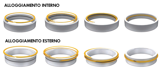 Anche l'installazione di un anello di tenuta per interni si esegue in modo similare. Un foro conico, che agisce da guida contraente di un anello, ed uno stantuffo spingono l'anello di tenuta in posizione. L'attrezzatura per l'installazione dell'anello dovrebbe avere le sue superfici di lavoro temperate al fine di minimizzare l?usura.